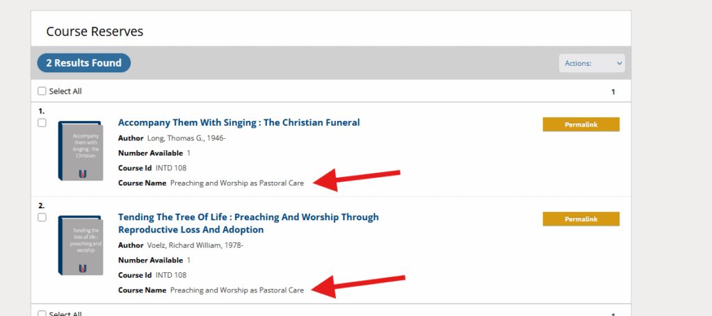 Now select the desired course. You can now see all items this professor currently has on reserve for this course.